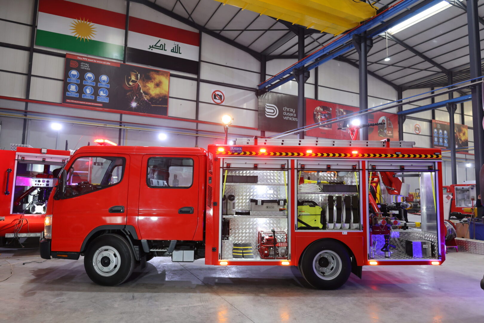 2,000-liter water tank and 500-liter foam tank